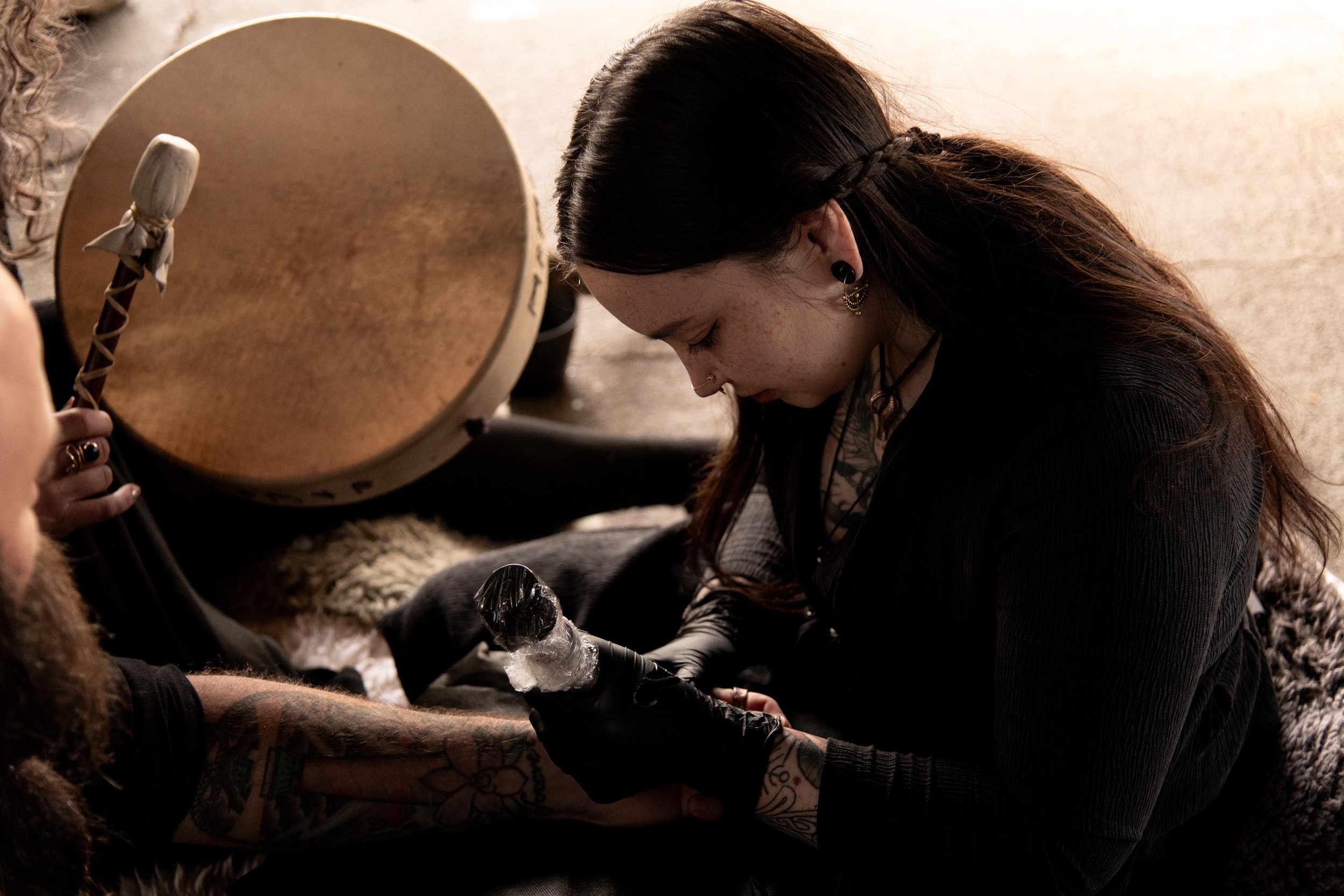 Jacqui Alberts is a tattooer and visual artist newly based in Copenhagen, Denmark. She specializes in historical Nordic/pagan influenced ornamental design as well as illustrations inspired by nature, folklore and history. She is well familiarized with runes, nordic mythology and ancient art styles, and views her work as extension of her dedication to storytelling, ritual and animist ways. You can find her most often at Kunsten På Kroppen (Copenhagen) and Moonlight Tattoo (Seattle, WA, USA) as well as on her travels throughout the globe.